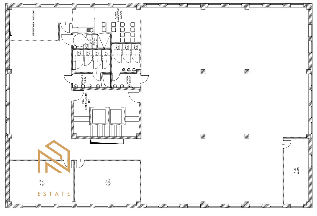 Powierzchnia idealna dla firm poszukujących biura z możliwością aranżacji według własnych potrzeb.